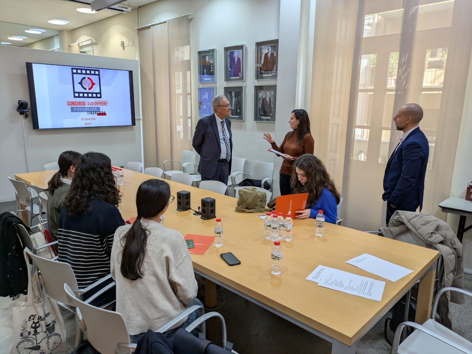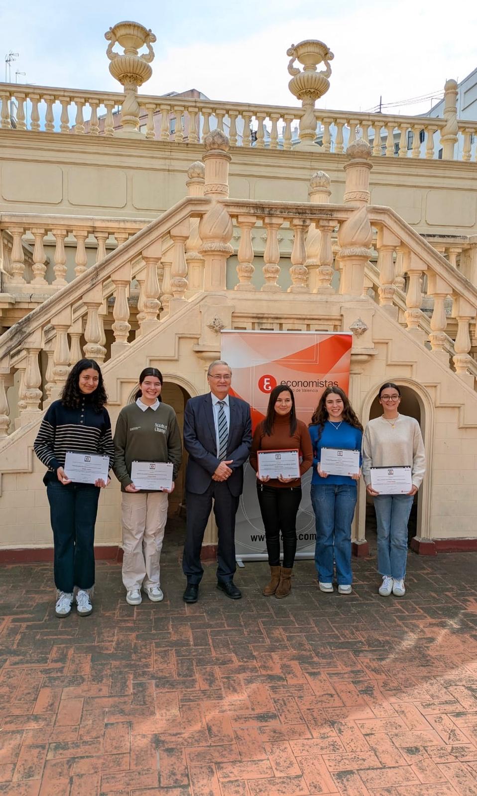 El decano del COEV, Juanjo Enríquez, les entregó el premio y destacó que «la educación financiera es una herramienta fundamental para tomar decisiones informadas y responsables».